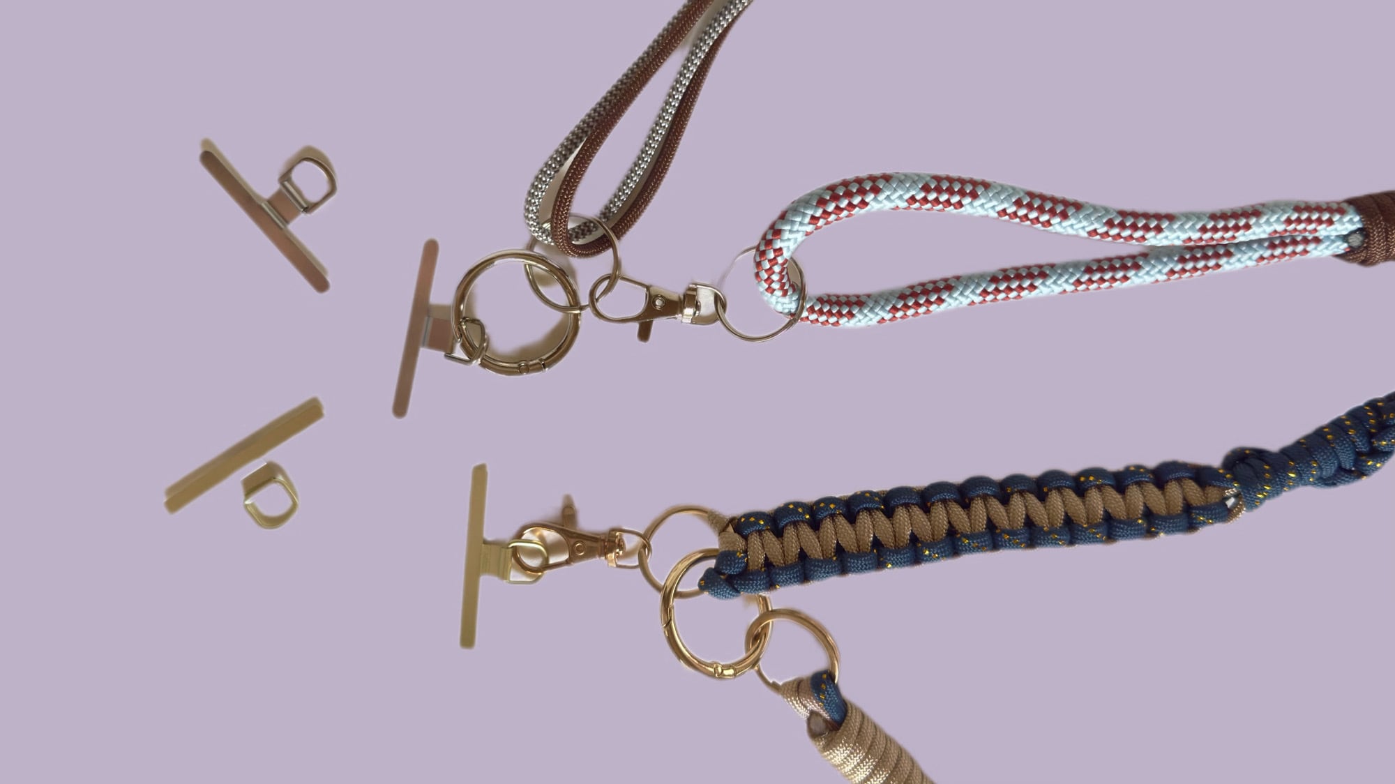 カラー:パステルピンク・パステルブルー・ライトグレー 長さ:金具含め 135cm ― ハンドストラップ 45cm / ショルダーパーツ 92cm 丸カンを外せば、ハンドストラップとしても使える2Way仕様のスマホショルダー。 ショルダーパーツは、ハンディファンや小物用ストラップとしてもちょうどいい長さです。 金具部分にはサングラスやミニポーチを掛けることもでき、身軽にお出かけしたいときに便利。 複雑に編み込まれたコードは高い強度を持ち、実用性も抜群です。 機能性とファッション性を兼ね備えた、オンにもオフにも活躍する一本です。