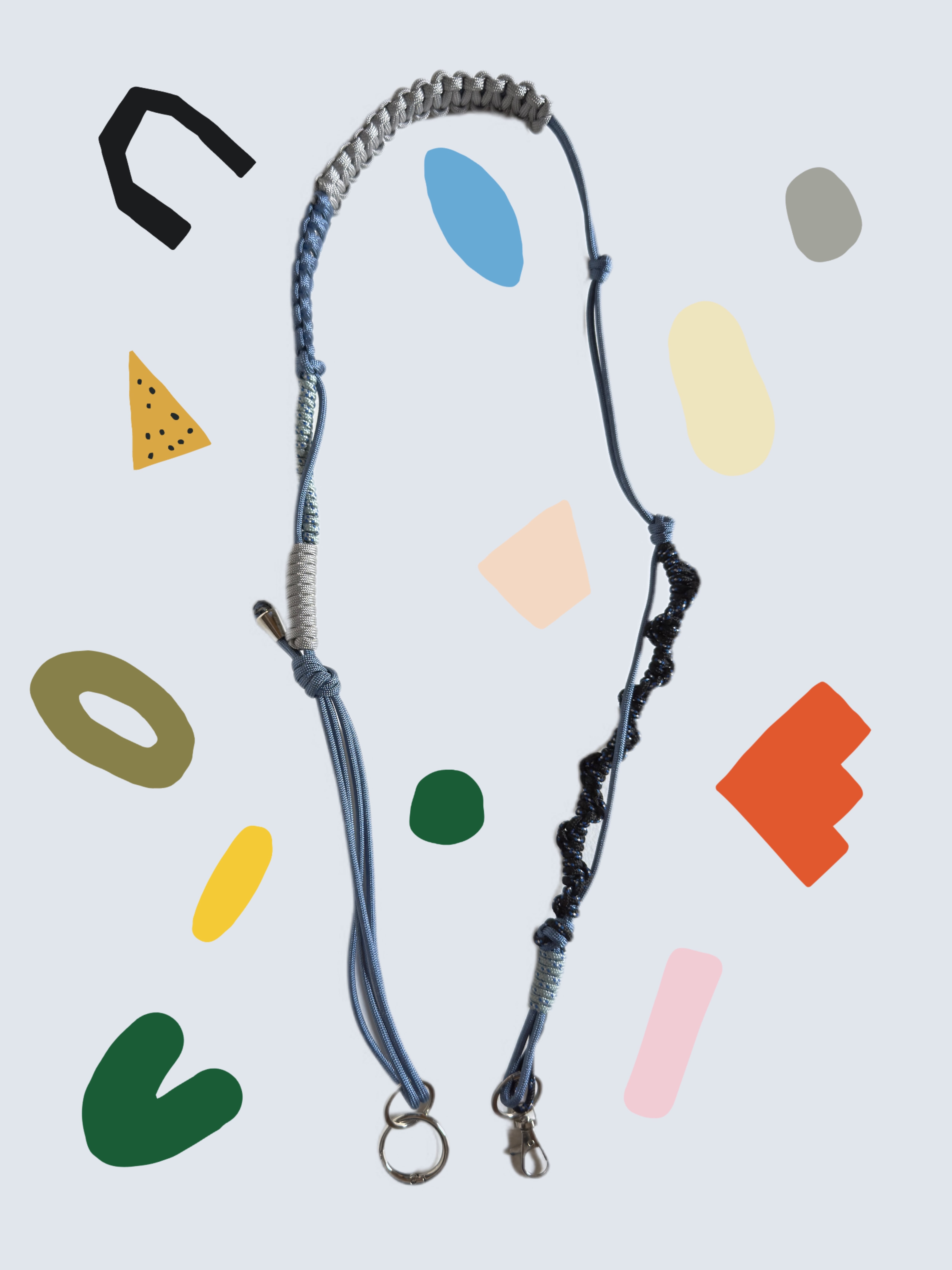 華奢なコードをベースに、即興的に編み込んだ一点物デザイン。
