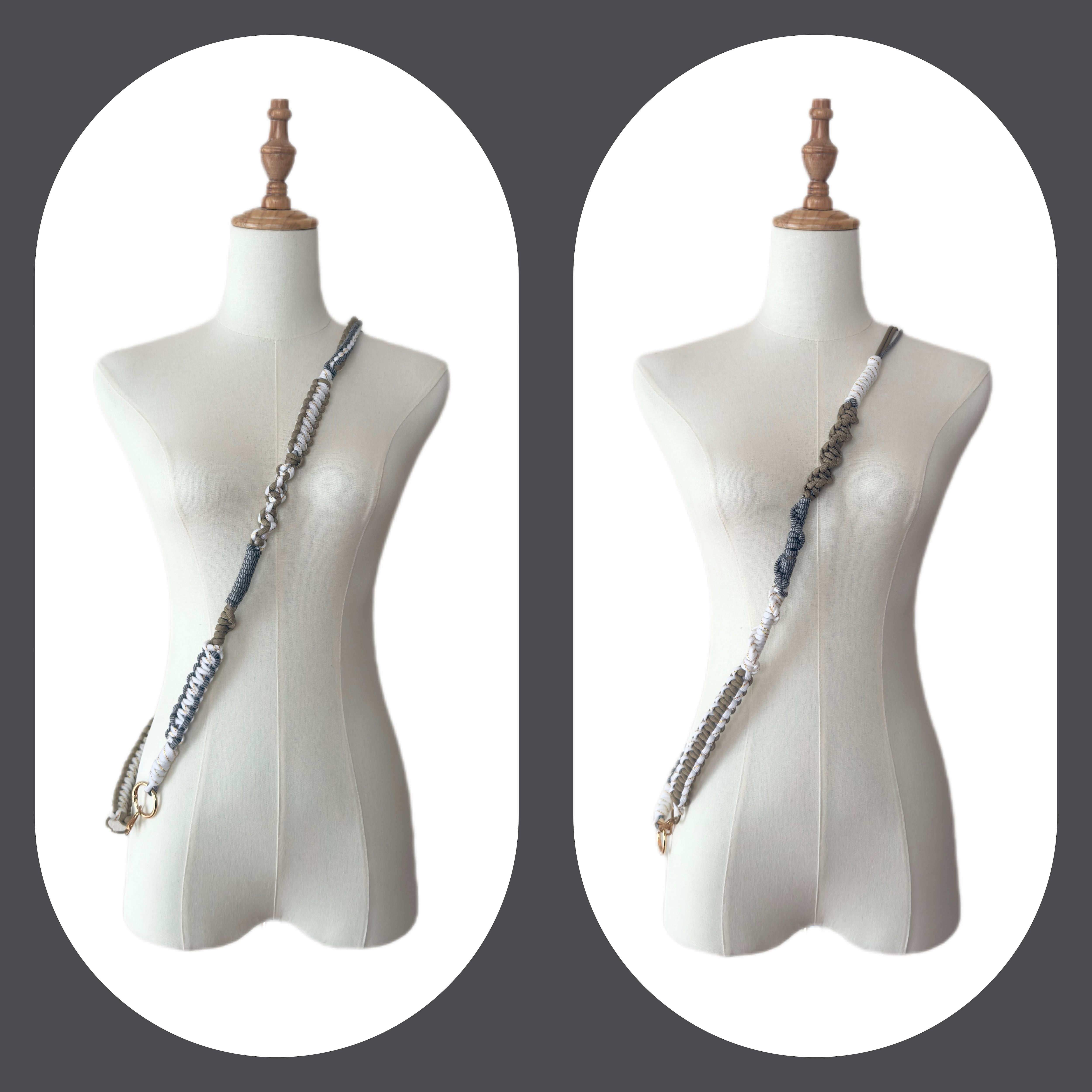 ランダムに編み込んだコードで仕立てた、シンプルでベーシックなスマホショルダー。