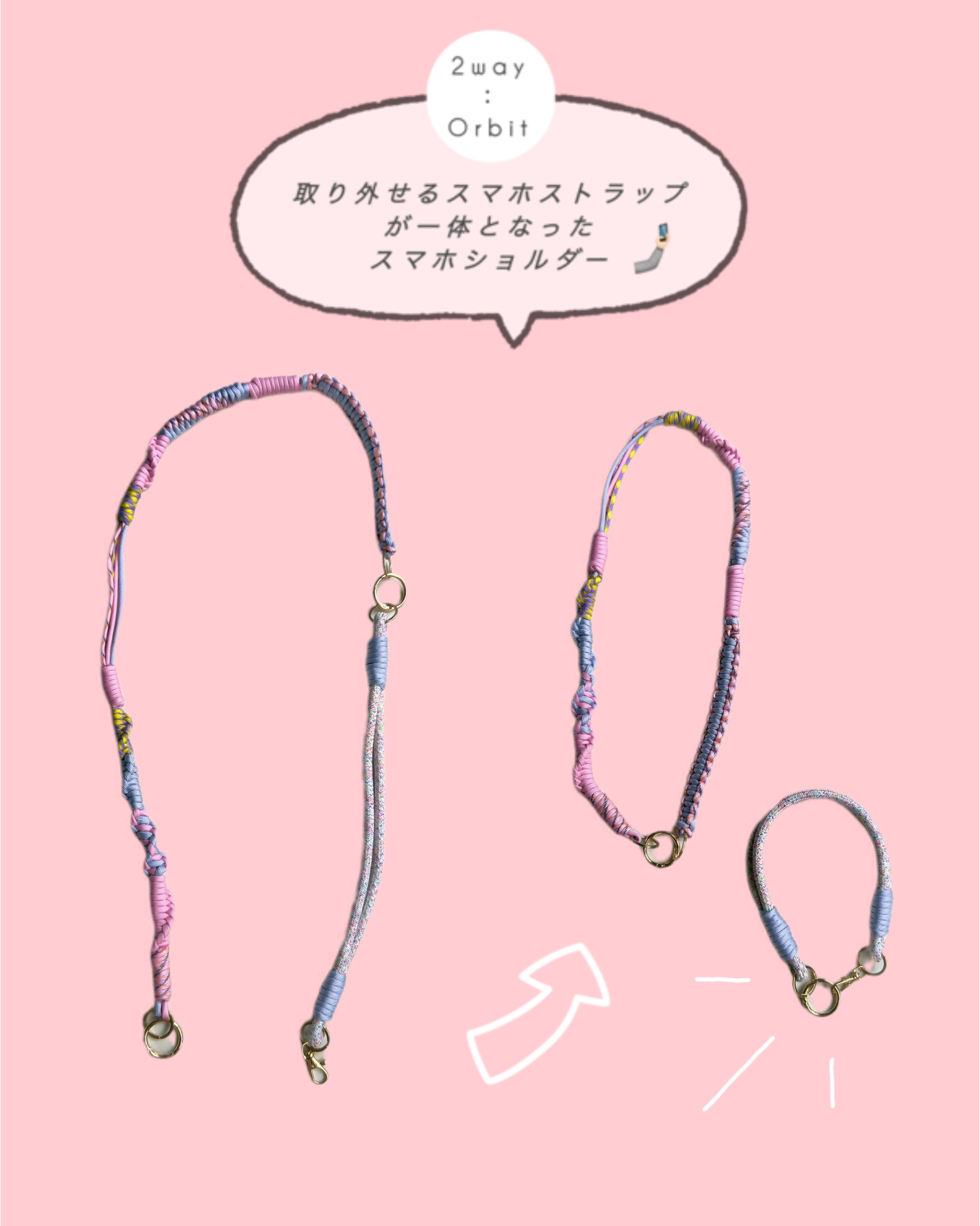 丸カンを外せば、ハンドストラップとしても使える2Way仕様のスマホショルダー。