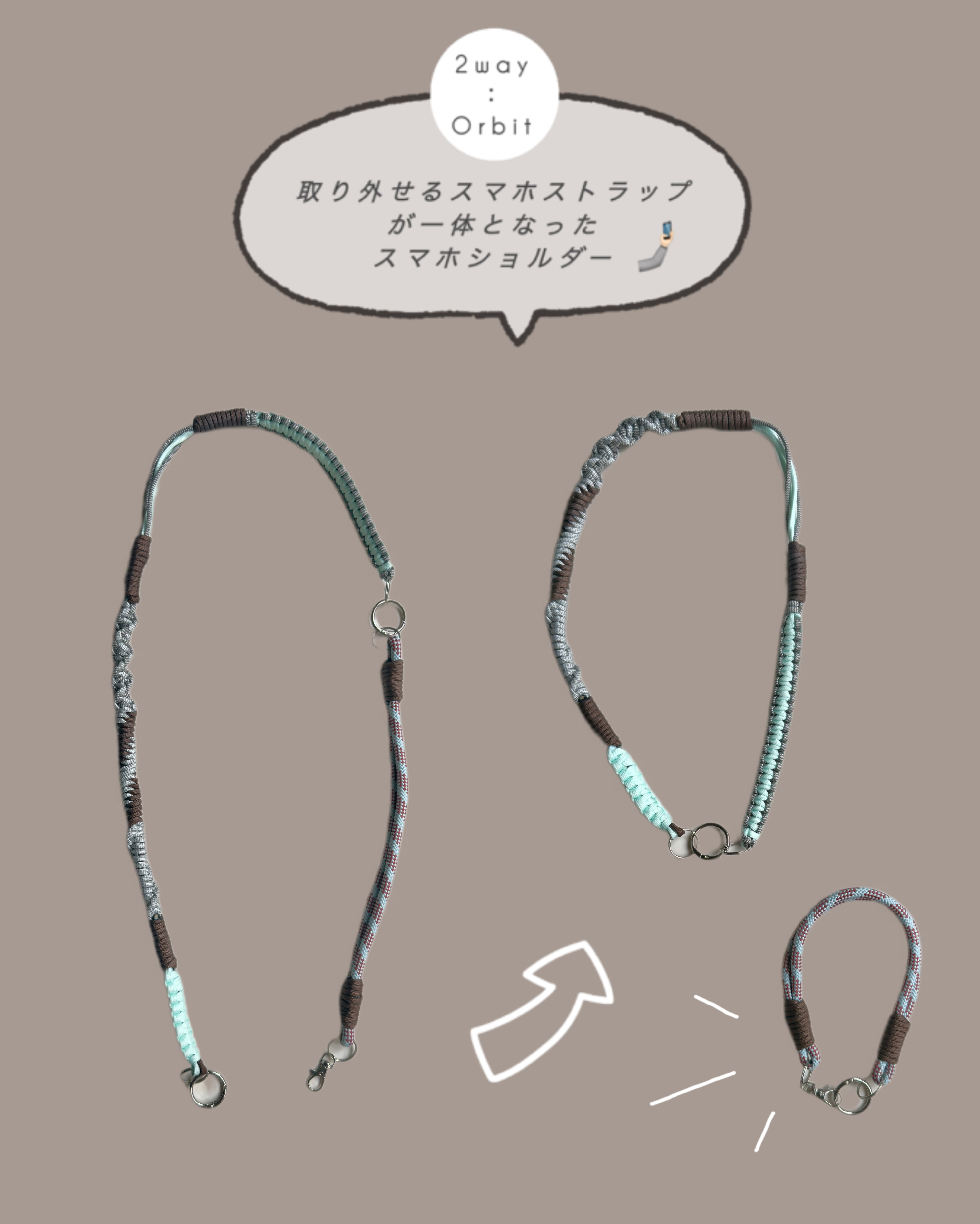 丸カンを外せば、ハンドストラップとしても使える2Way仕様のスマホショルダー。